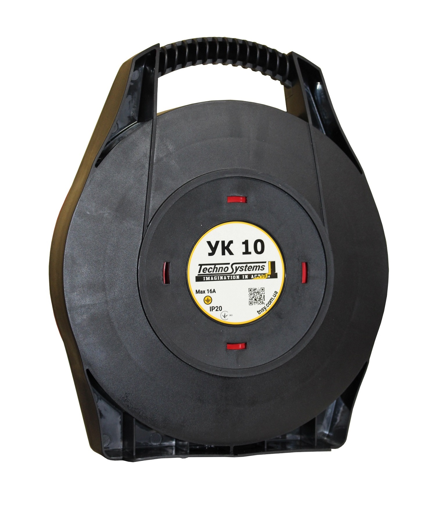 Подовжувач на кабельній котушці типу УК10 без дроту із захистом від превищення потужності навантаження, товарного знаку Techno Systems призначений для підключення