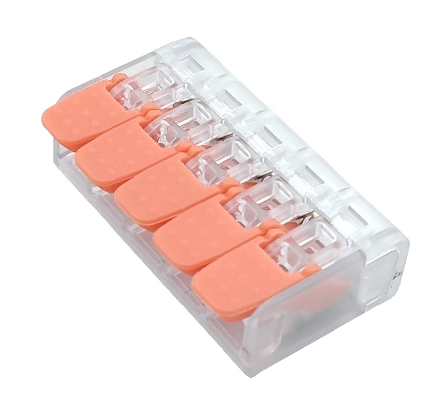 Будівельно-монтажна клема СМК 221-465WO – призначена для з’єднання одножильних та багатожильних провідників без використання інструменту в електричних мережах змінного та постійного струму.