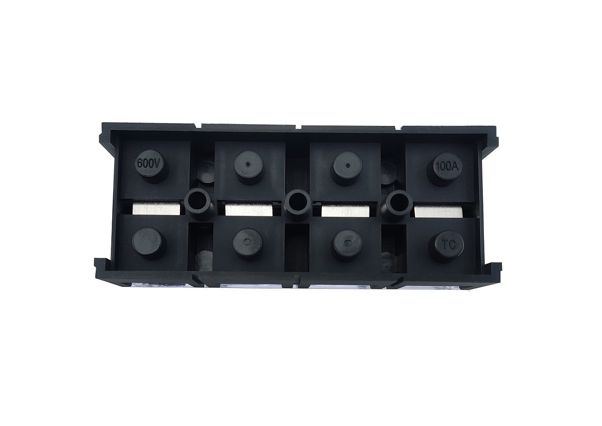 Клемна колодка ТС1004 — призначена для механічного та електричного з’єднання підготовлених або непідготовлених провідників в низьковольтних колах змінного або постійного струму.