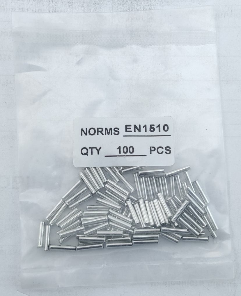 Наконечник гільза без ізоляції EN1510 призначений для оконцювання шляхом опресування попередньо зачищених від ізоляції багатодротяних мідних проводів та кабелів перетином 1,5 мм².