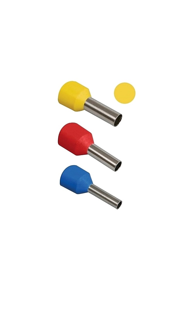 Наконечник гільза Е1012 1мм2 — призначений для окінцювання проводів і підключення їх до контактних затискачів різного електроустаткування наприклад (клемних блоків, автоматичних вимикачів, набірних затискачів, розеток тощо). Даний вид наконечника призначений для окінцювання багатодротяних гнучких проводів. З’єднання наконечників відбувається таким чином: зачищений кінець багатодротяного провідника заводиться всередину порожнистої кінцевої труби і вже потім опресовується разом з трубкою за допомогою спеціального інструменту, утворюючи єдину конструкцію, надійно фіксую пучок багатодротяної жили.