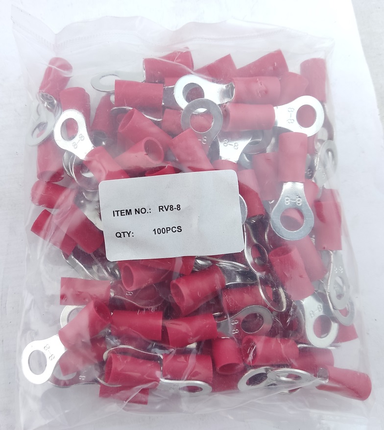 Наконечник кільцевий з ізоляцією RV8-8 (6-10/8) червоний — для окінцювання мідних проводів та кабелю методом опресування, де передбачено гвинтове кріплення з’єднання. Монтується шляхом оперсування.