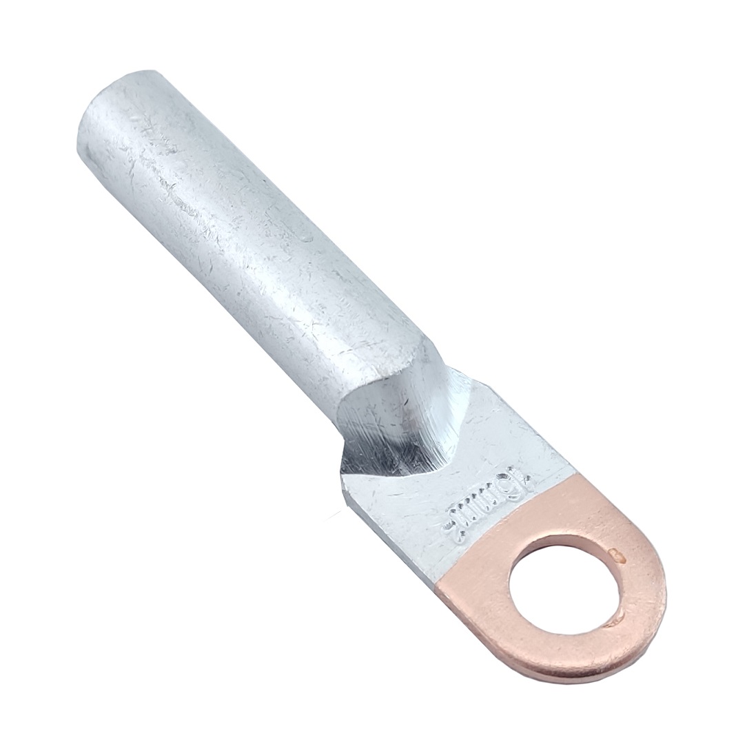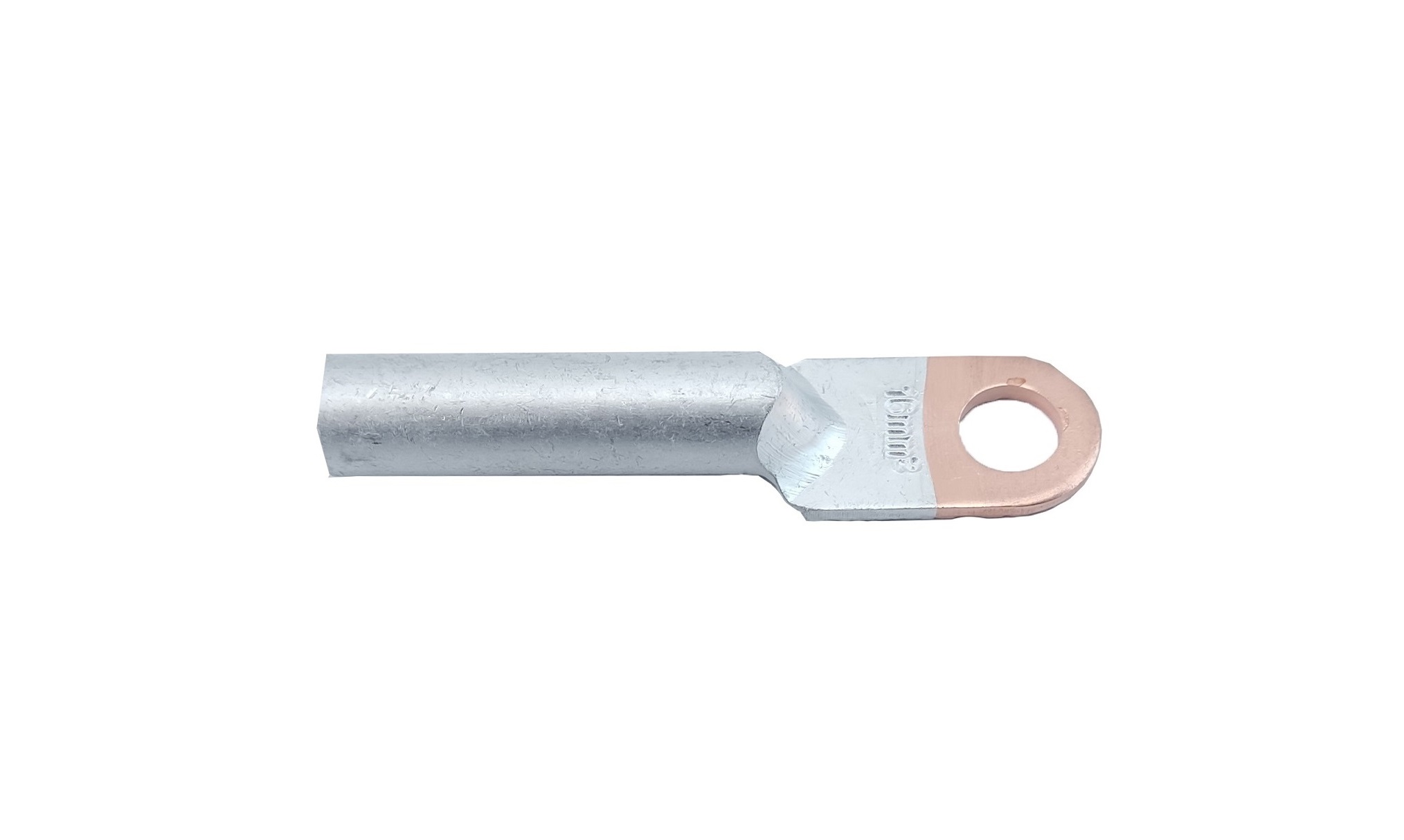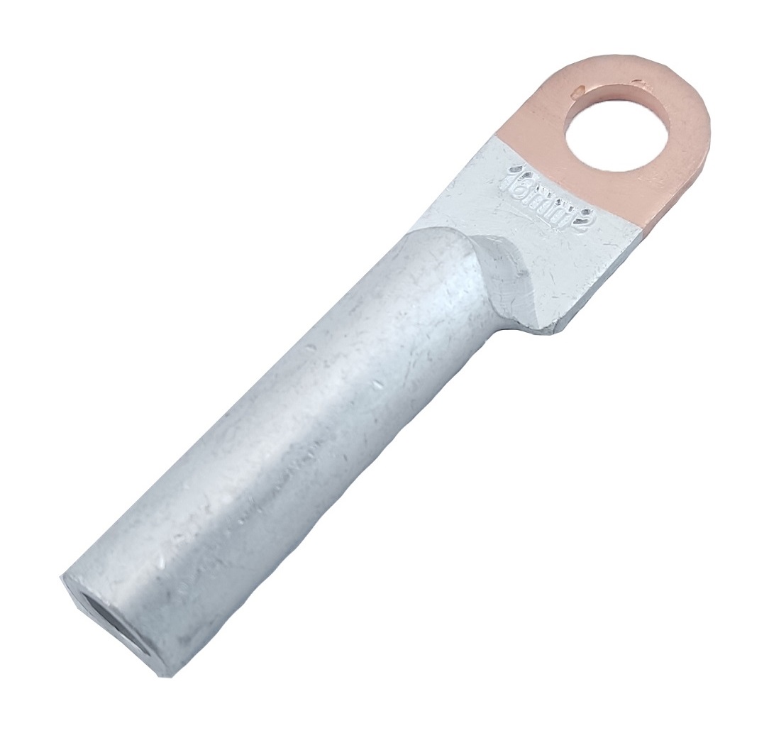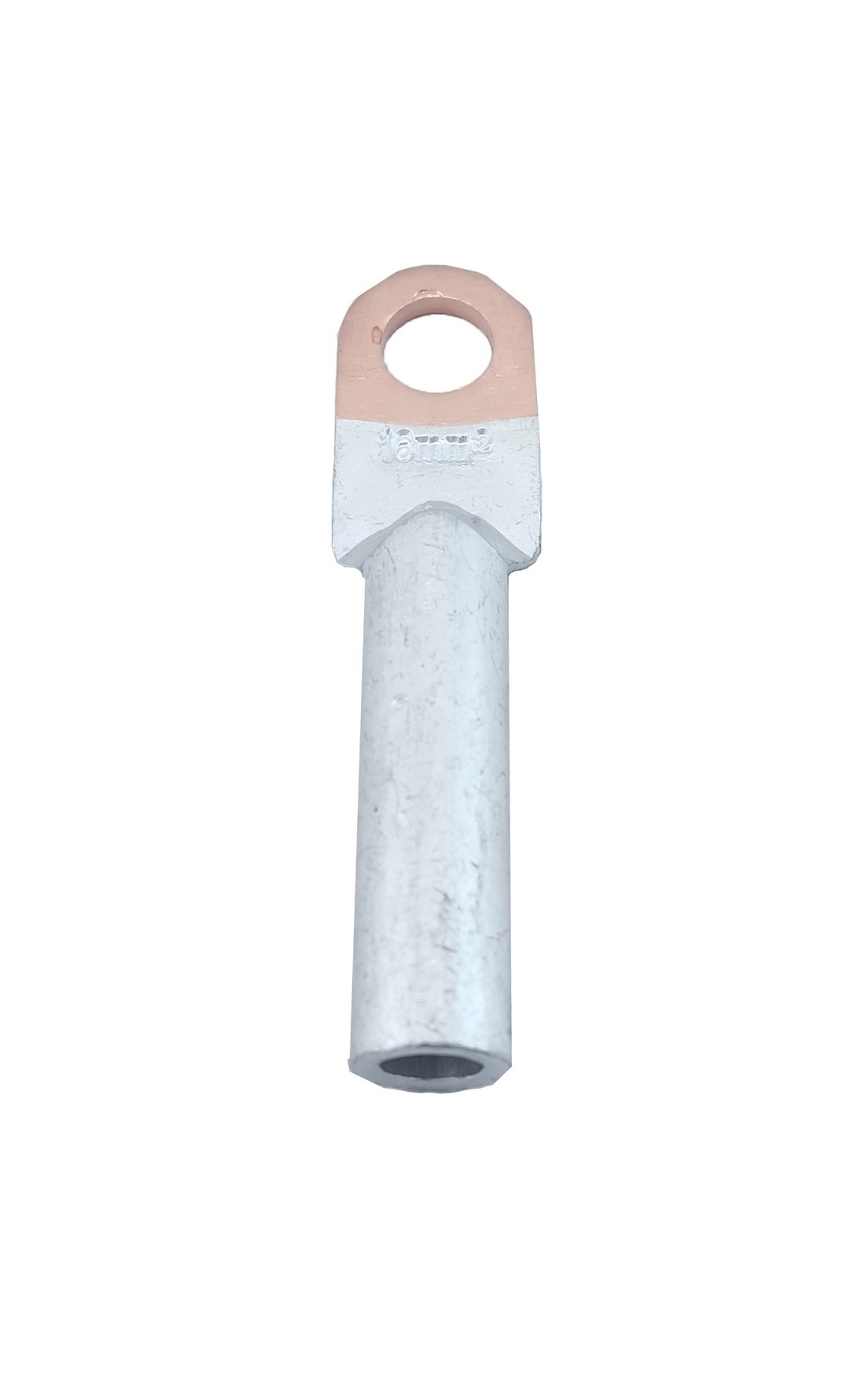 Наконечник мідно-алюмінієвий DTL-016/8 — для оконцювання шляхом опресування попередньо зачищених від ізоляції алюмінієвих проводів та кабелів перетином 16 мм² на напругу до 10 кВ.