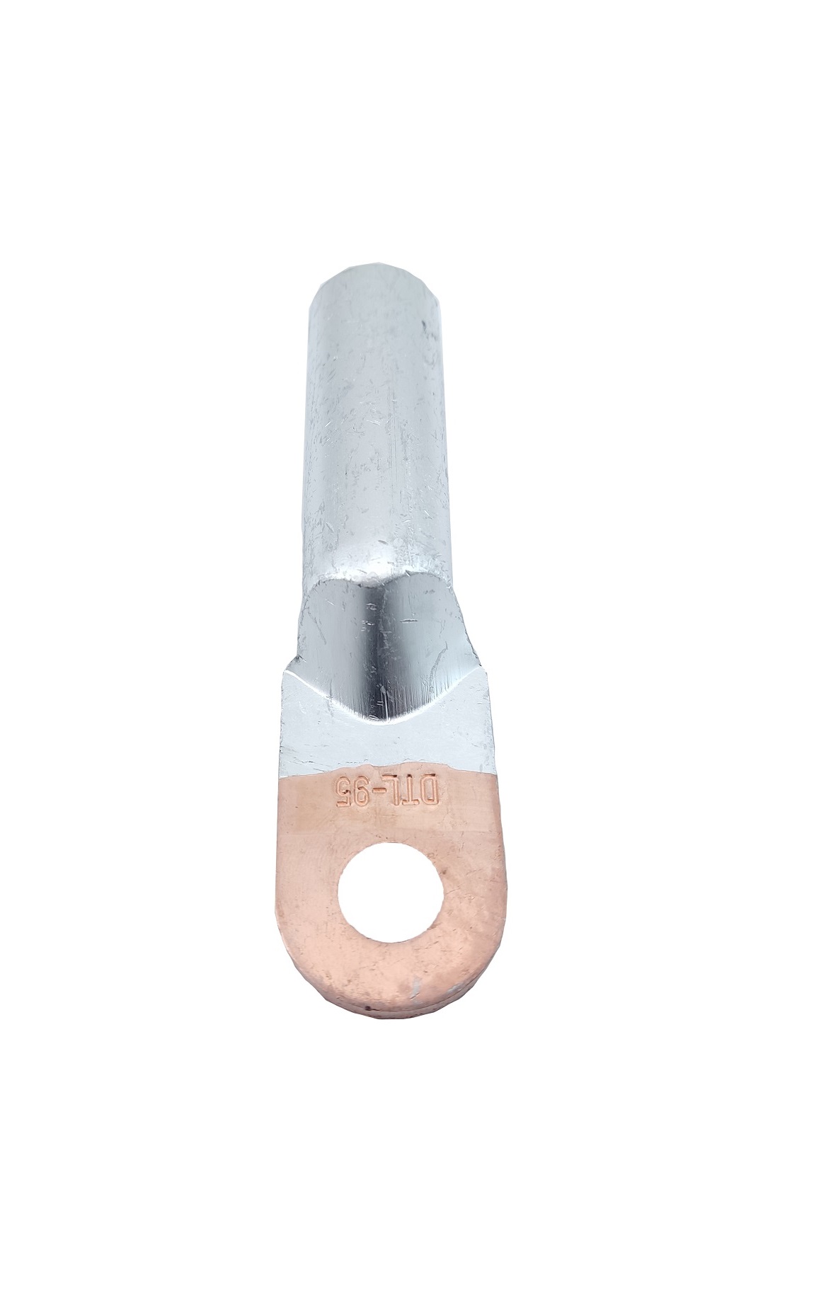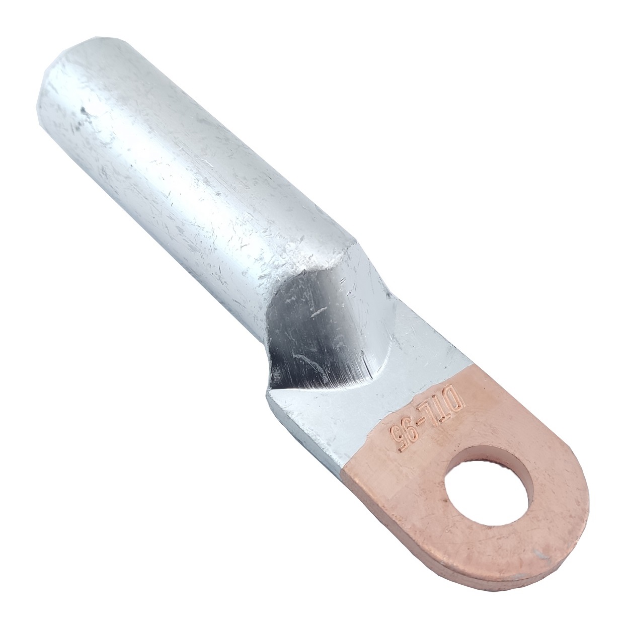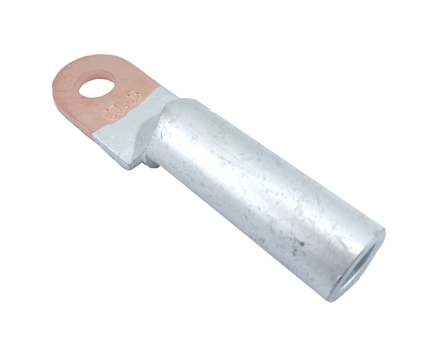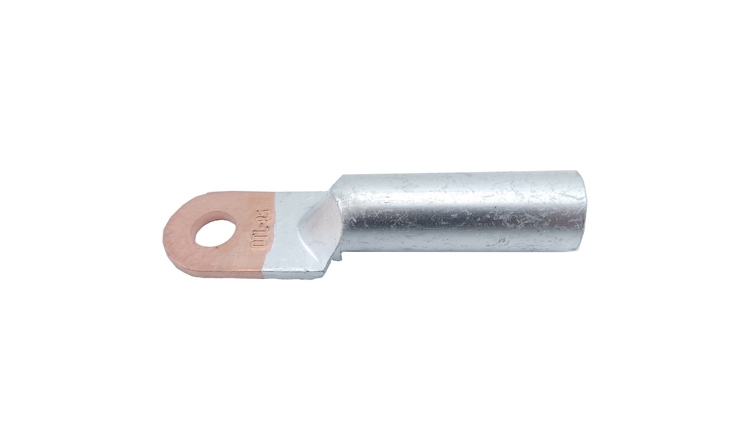 Наконечник мідно-алюмінієвий DTL-095/12 — для оконцювання шляхом опресування попередньо зачищених від ізоляції алюмінієвих проводів та кабелів перетином 95 мм² на напругу до 10 кВ.