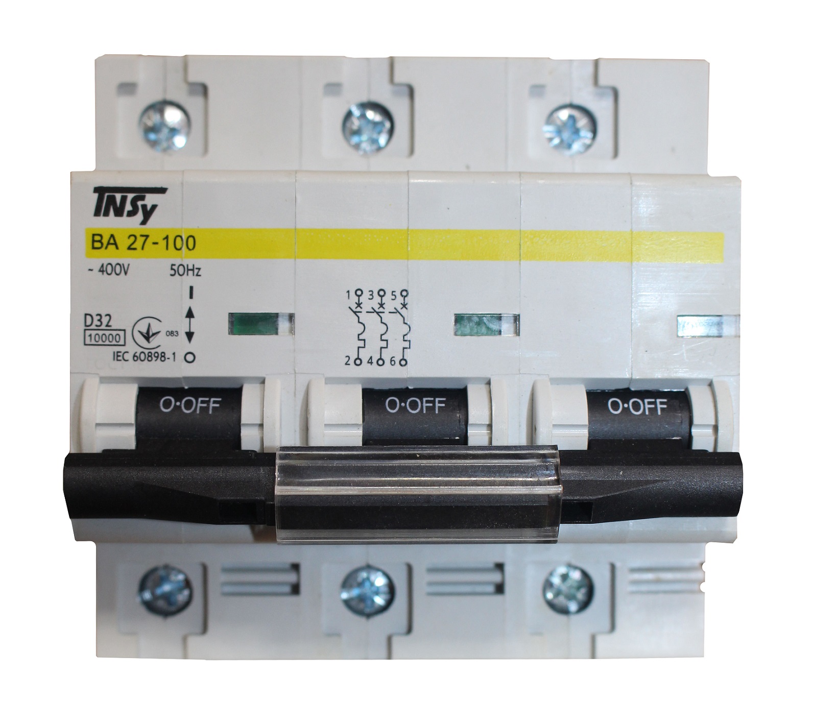 Автоматичний вимикач ВА27-100 3Р 32А 10кА х-ка D — призначений для експлуатації в однофазних або трифазних електричних мережах змінного струму з номінальною лінійною напругою не більше 400 В частотою 50 Гц.