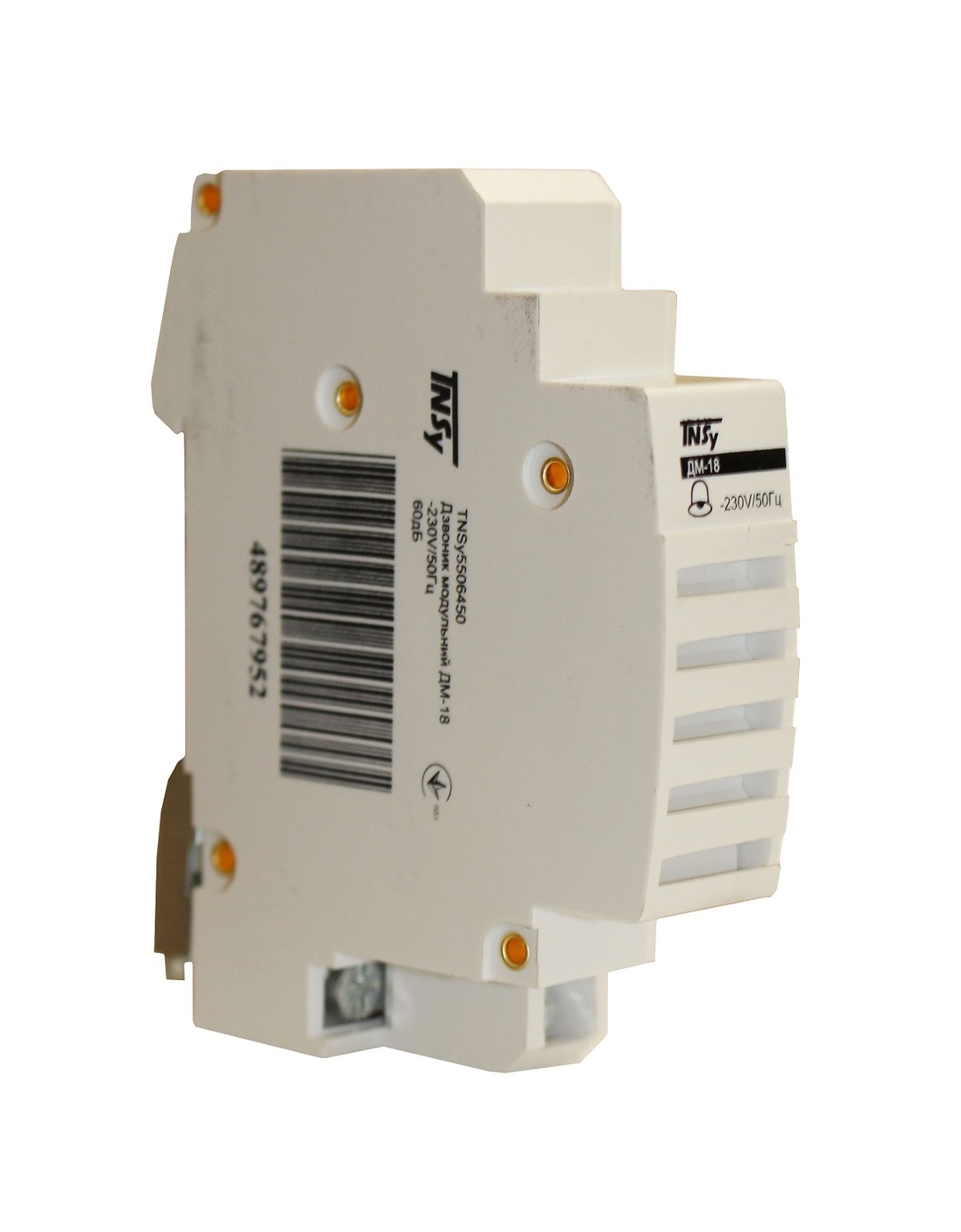 Дзвоник модульний ДМ-18 торгівельної марки TNSy призначений для виконання функції звукової сигналізації та застосування в мережах змінного струму напругою 230 В.