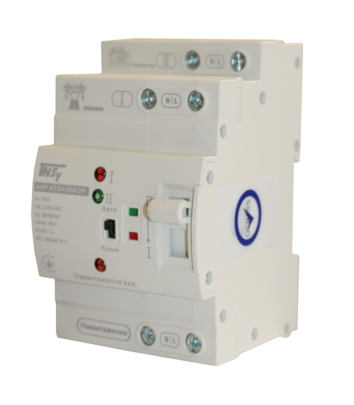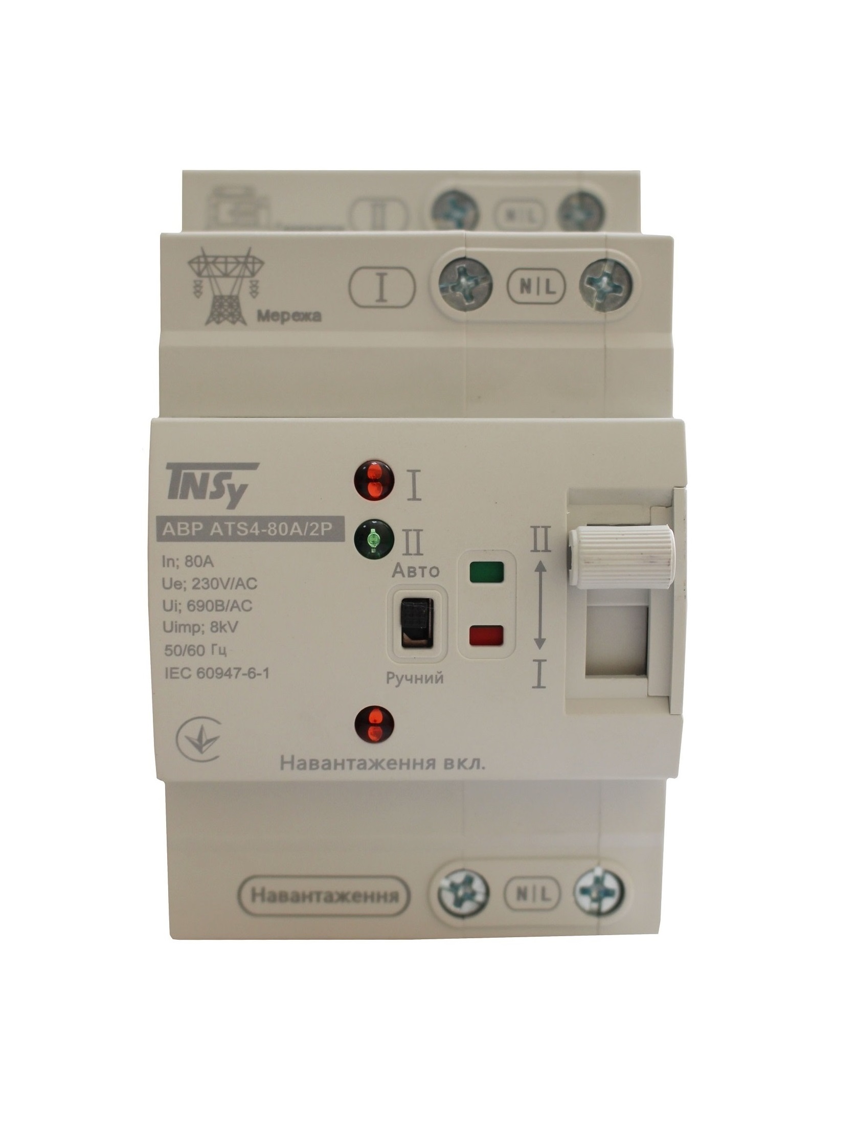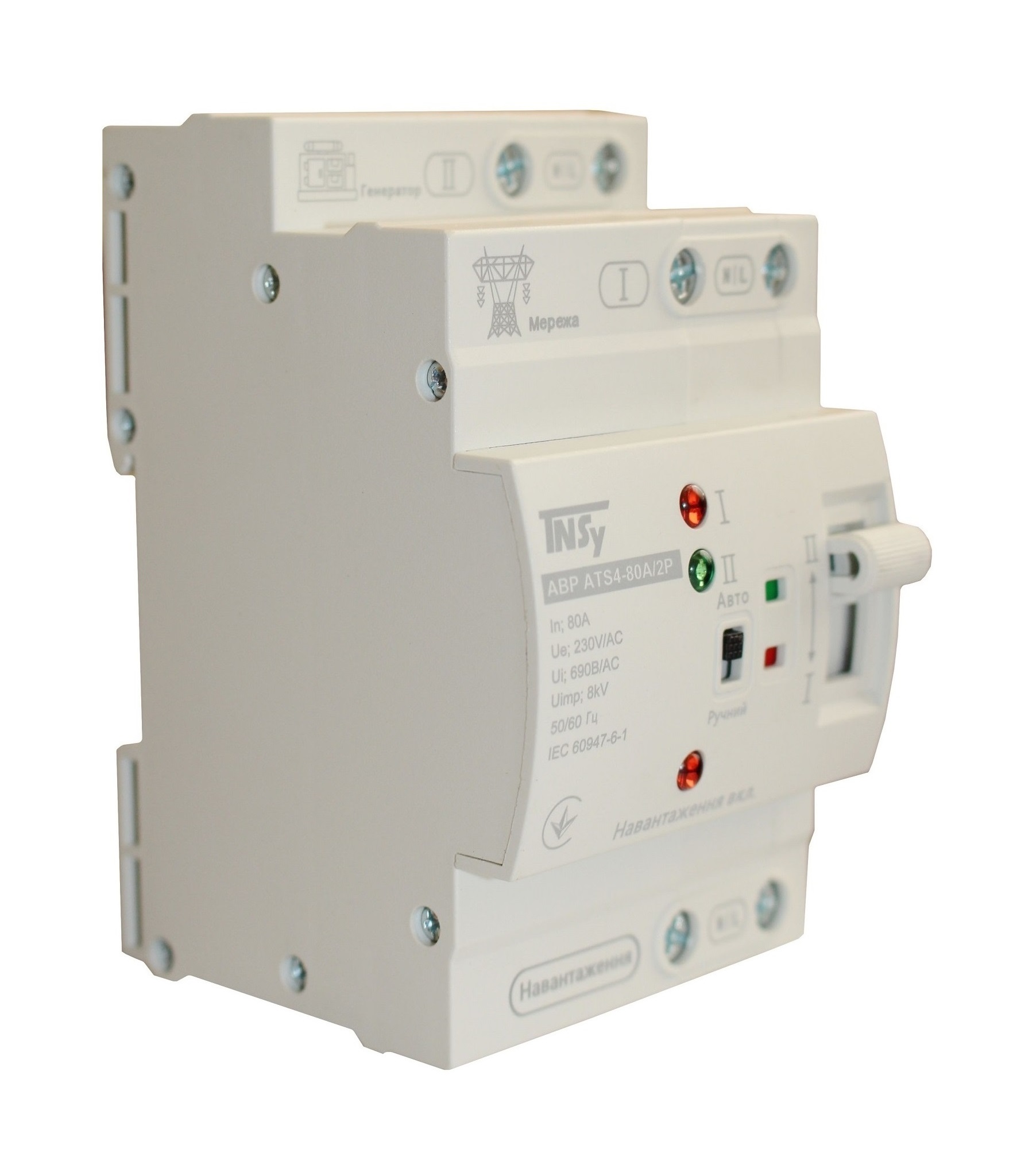 Автоматичний перемикач АВР ATS4 80A 2P — призначений для роботи в електричних мережах змінного струму номінальною напругою 240В/415В частотою 50/60Гц, номінальний струм від 6 до 80А.