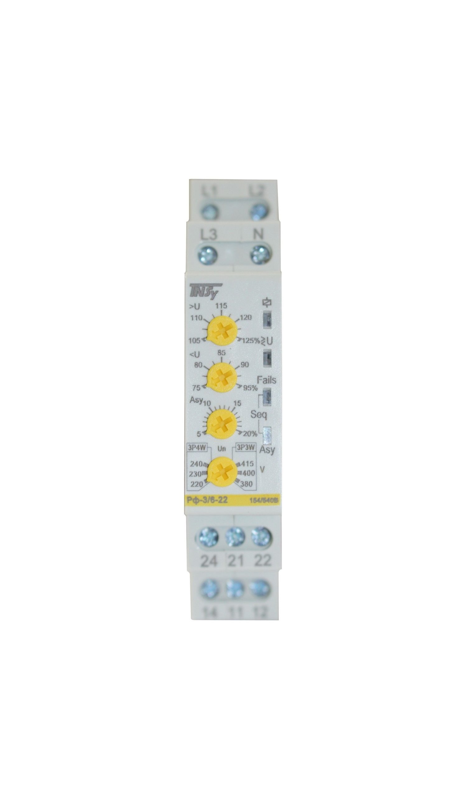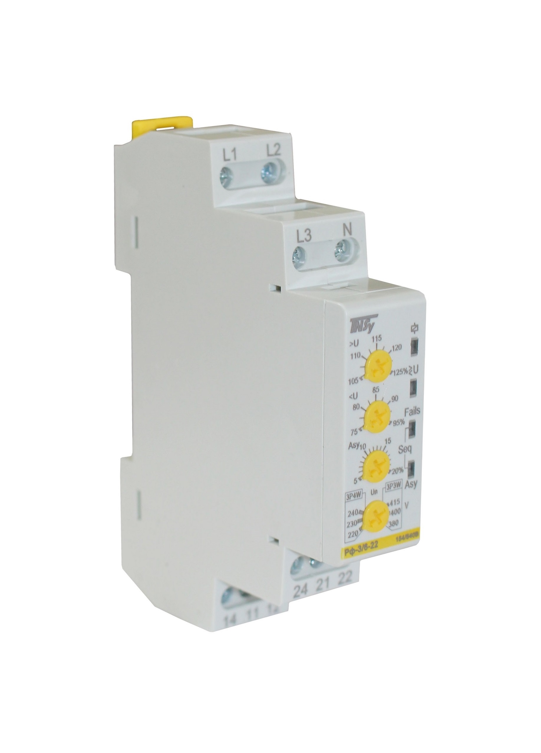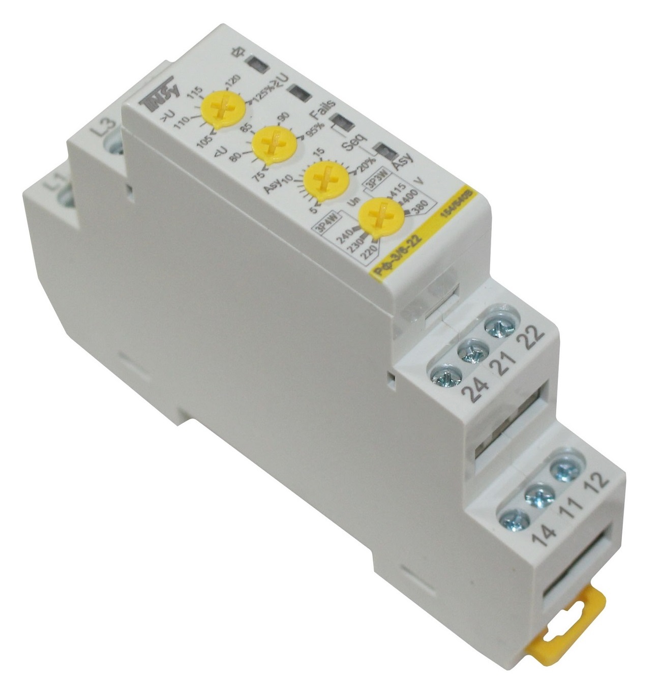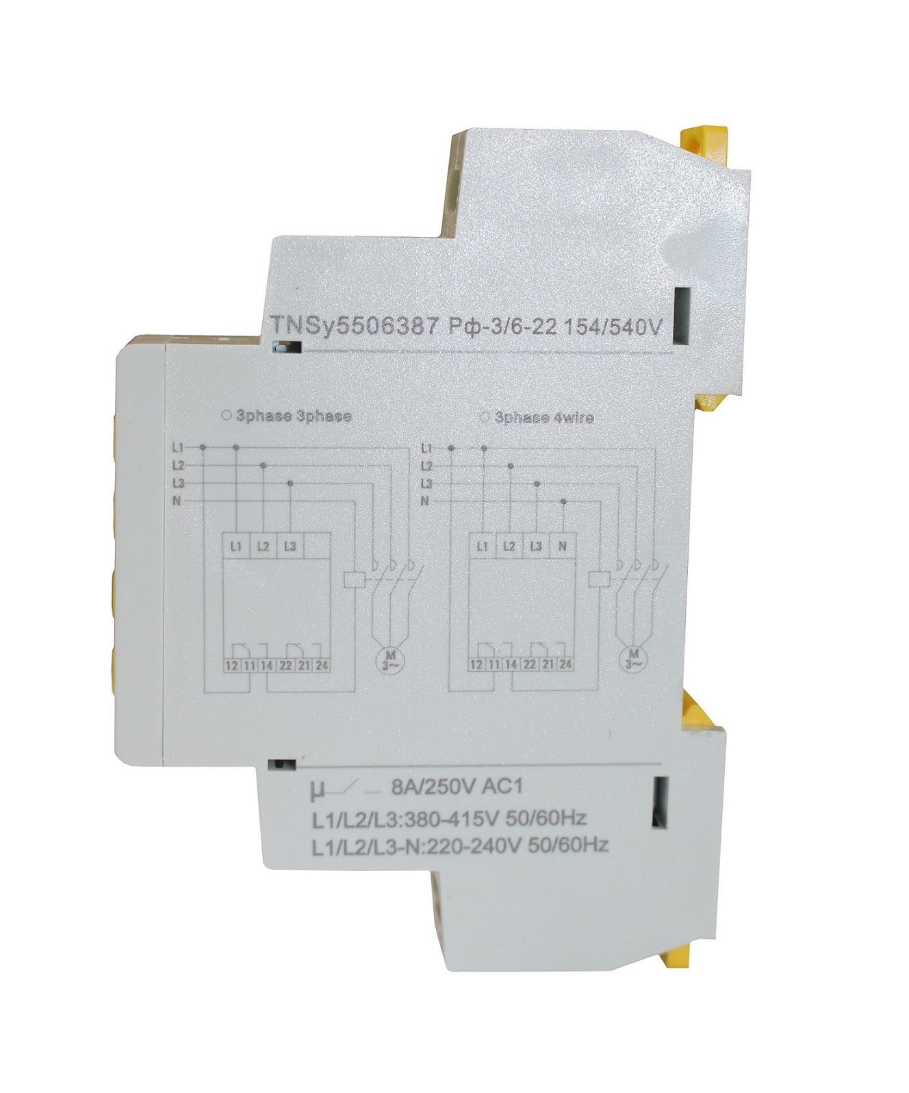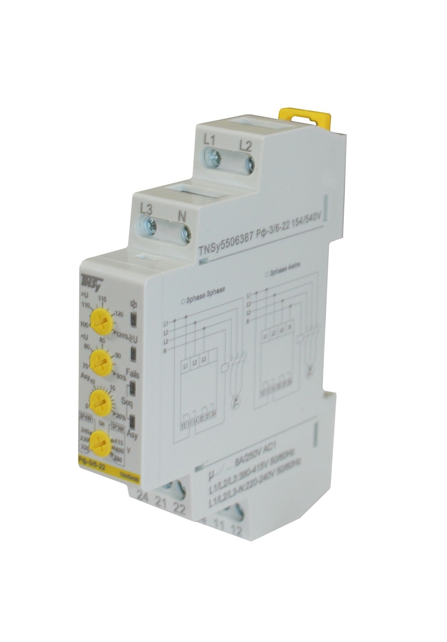 Реле фаз Рф-3/6-22 3ф+N 1мод. 154/540В (2C/Ox8A_AC1) 6 функцій, обриву, чергування, напруга +/-,асиметричність, затримка TNSy