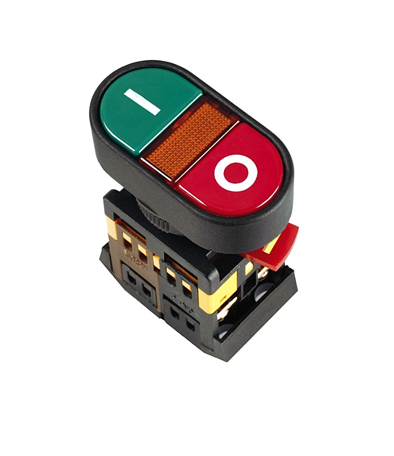 Кнопка APBB-22N «I-O» — призначена для оперативного та зручного управління контакторами, магнітними пускачами та реле автоматики у ланцюгах змінного струму частотою 50 Гц, напругою до 660 В або постійного струму напругою до 400 В. Виріб складається з двох вузлів, а саме швидкознімної головки та контактного модуля. Контактна група чорного кольору – замикаюча (1з), коричневого кольору розмикаюча (1р).