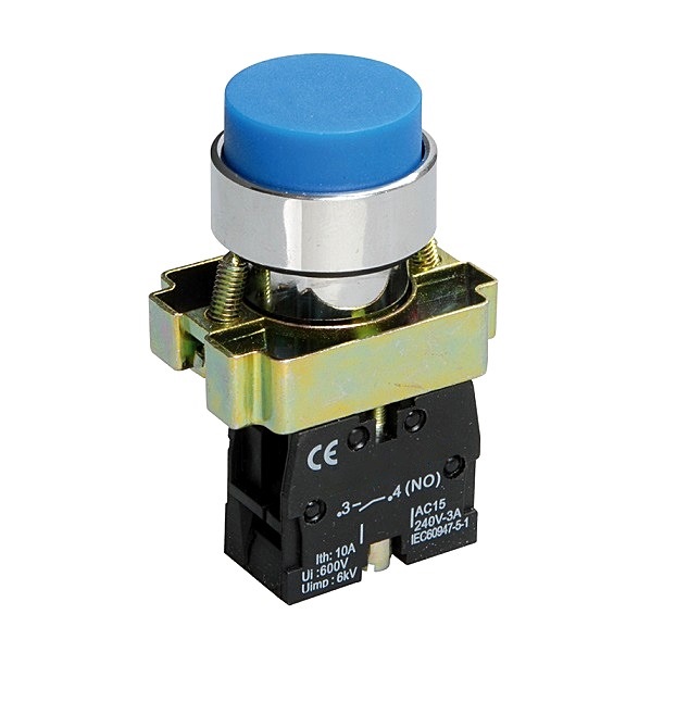Кнопка XB2-BL61 1NO без підсвічування синій — призначений для оперативного та зручного управління контакторами, магнітними пускачами та реле автоматики у ланцюгах змінного струму частотою 50 Гц, напругою до 660 В або постійного струму напругою до 400 В. Виріб складається з двох вузлів, а саме швидкознімної головки та контактного модуля.