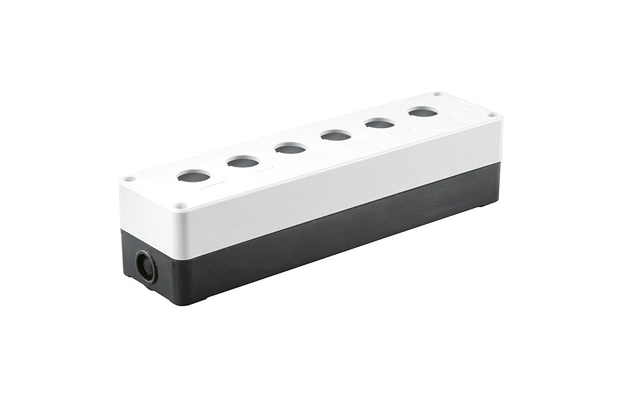 Корпус КП106 для кнопок 6 місць білий TNSy — призначений для монтажу світлосигнальних індикаторів, кнопок керування та перемикачів.