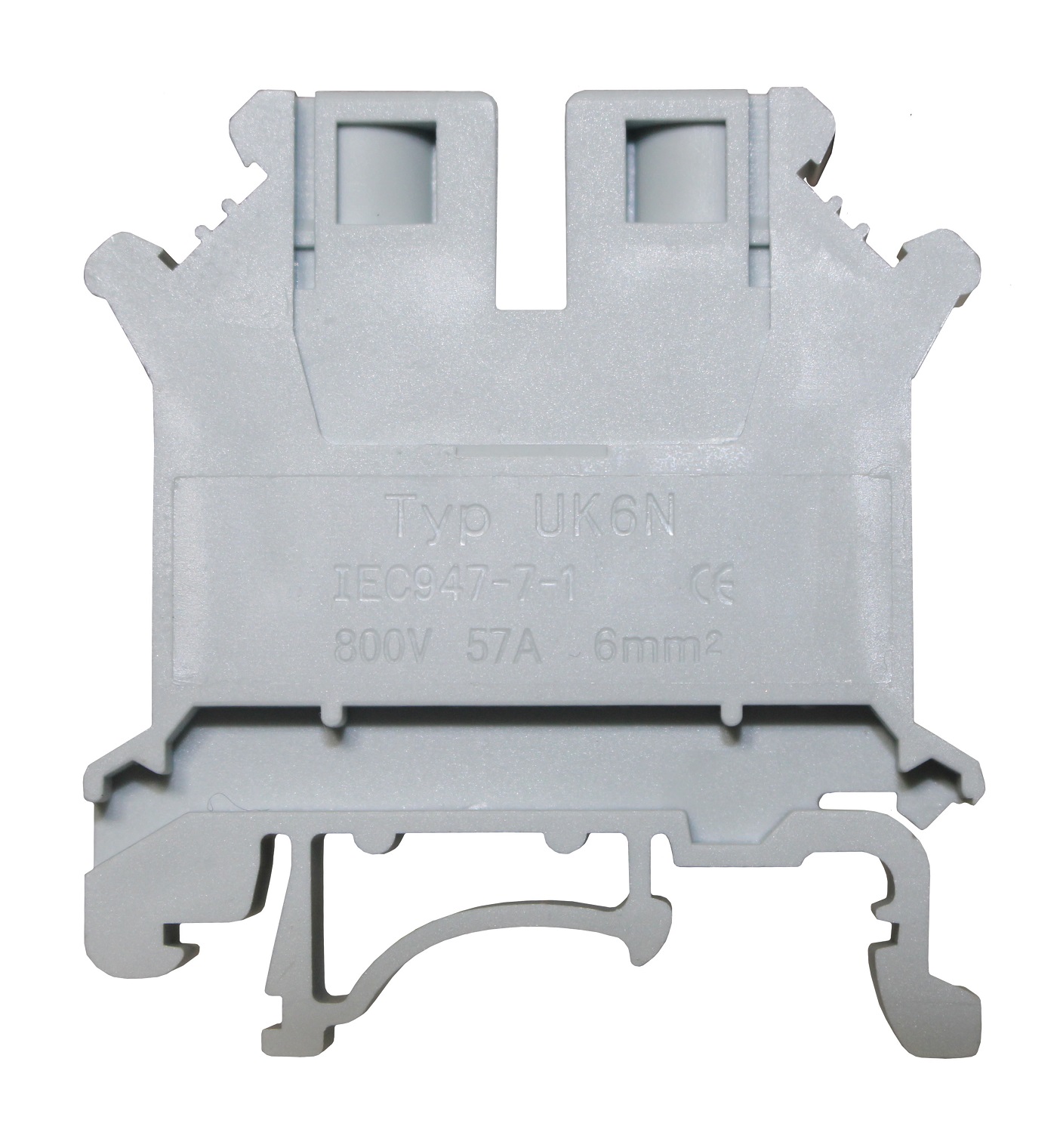 Клема КНГ-UK6 57А, 0,5-6мм2, гвинтова, сіра, набірна на DIN-рейку, без маркера, без кришки TNSy