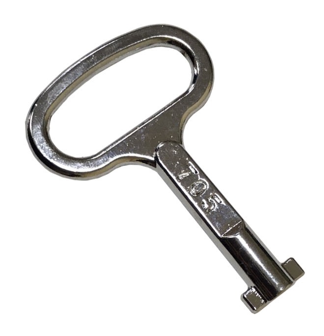 Виконаний із сталі з хромуванням. Ключ металевий, нікельований. Призначений для замикання електричних збірок та шаф, з метою захисту від несанкціонованого проникнення та для захисту збірок від попадання пилу та вологи.