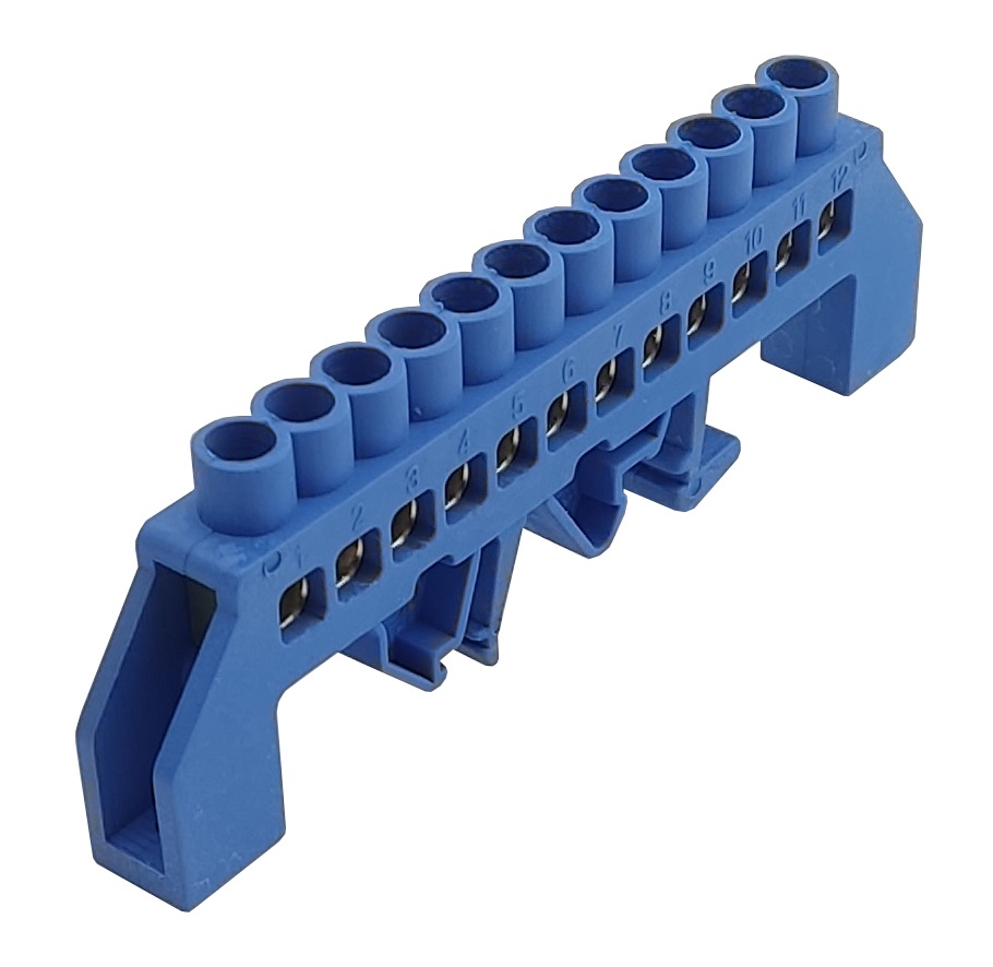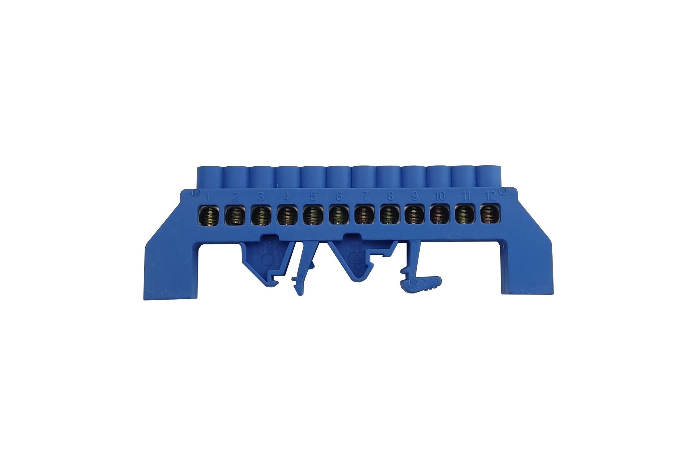 Шина універсальна ізольована «N» на DIN-рейку ШЛУ6х9-12 синій — призначається для електричного та механічного з’єднання нульових, захисних та фазних провідників.