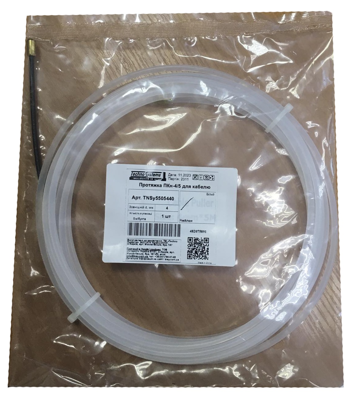 Протяжка ПКн-4/5 для кабелю, нейлонова, біла, 4мм, 5м TNSy