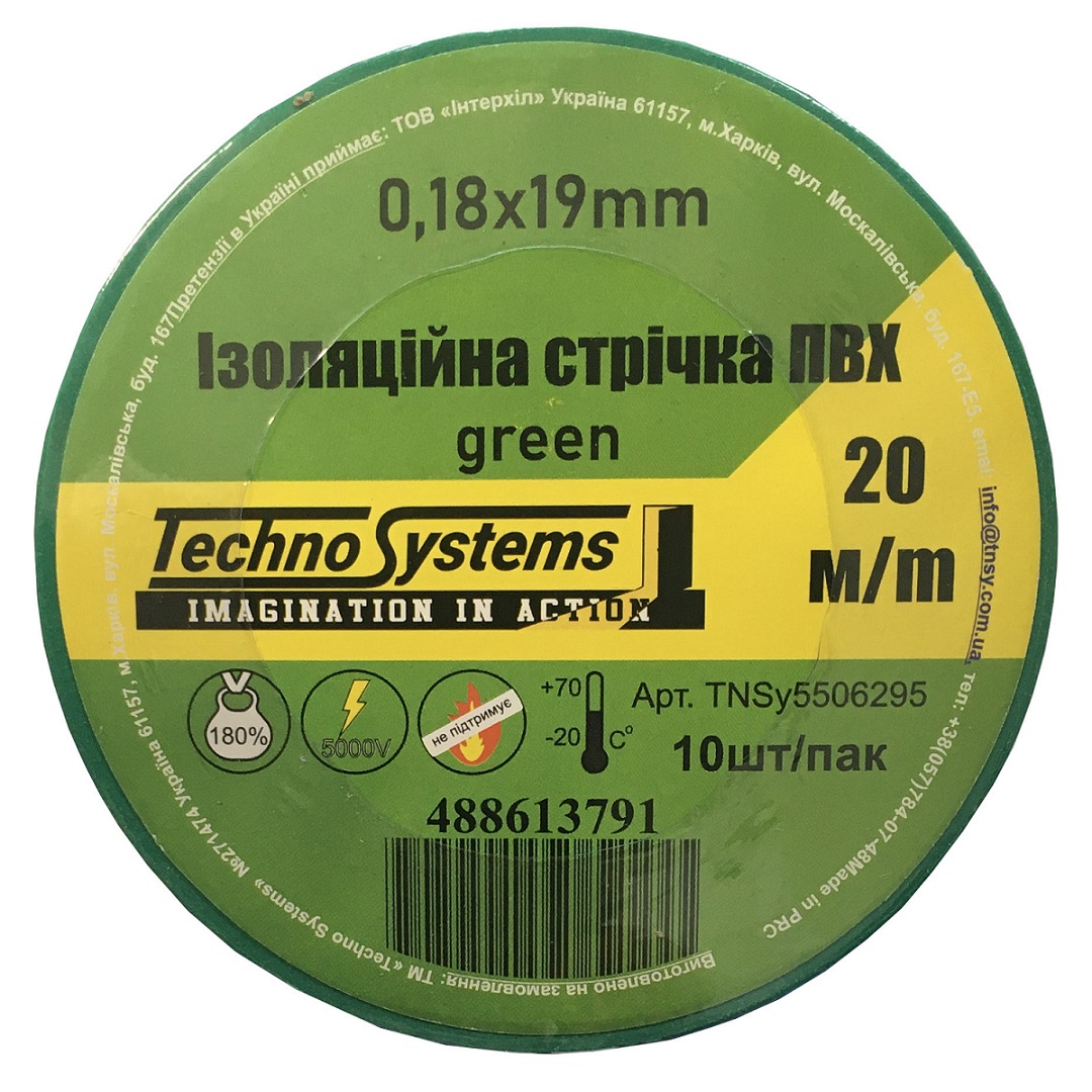 Количество товара Стрічка ізоляційна ПВХнг 0,18х19мм зелена 20м TNSy