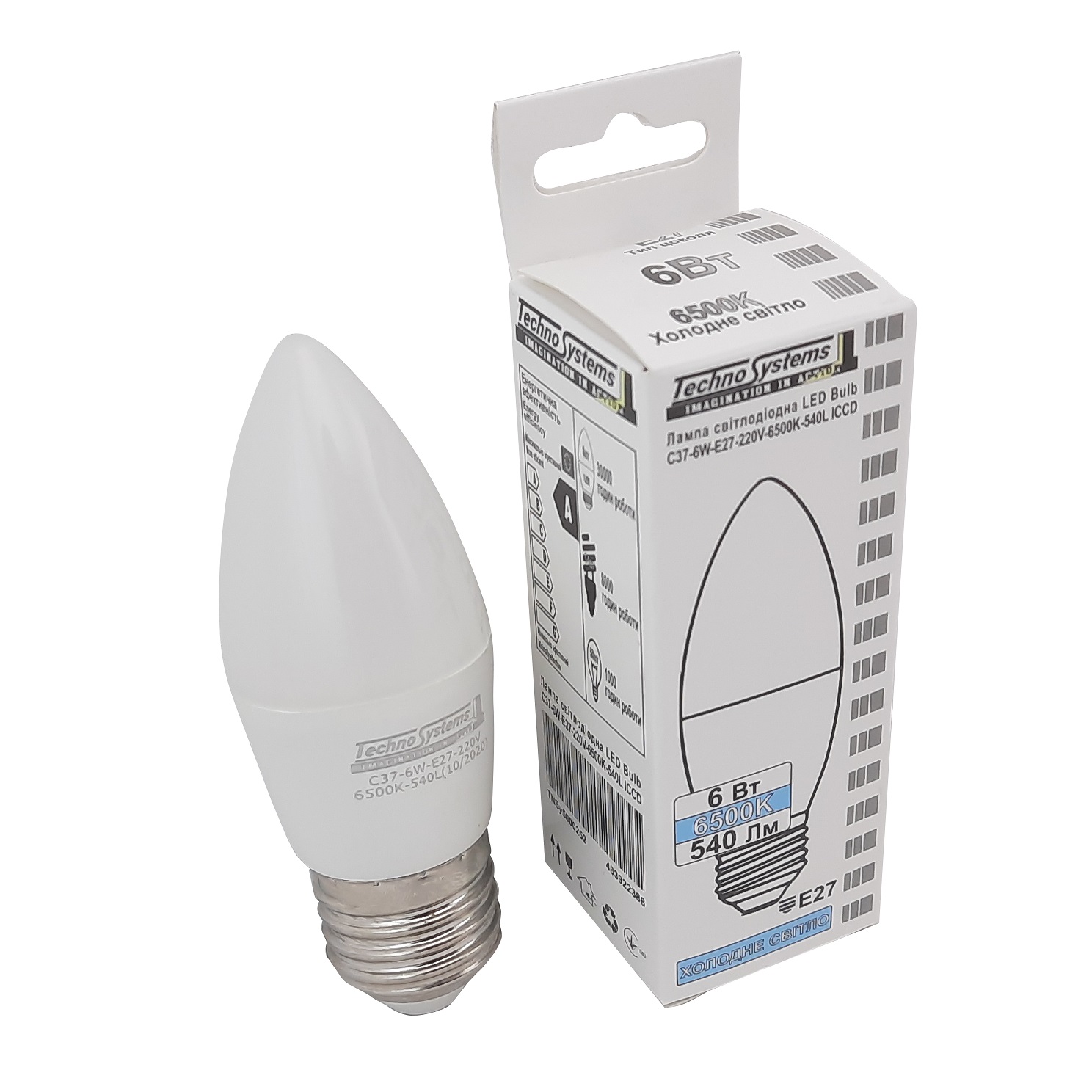Лампа світлодіодна LED Bulb-C37-6W-E27-220V-6500K-630L GOLDEN використовується для освітлення житлових, громадських, технічних приміщень. Лампа відповідає вимогам Технічного регламенту з електромагнітної сумісності обладнання, Технічному регламенту безпеки низьковольтного електричного обладнання (Декларація про відповідність виробника) ДСТУ EN 55015:2017 п. 4.3.1, ДСТУ EN 61547: 2016 п. 5.2, ДСТУ EN 61000-3-2:2016, ДСТУ EN 61000-3-3:2017 р. 5, ДСТУ EN 62560:2016 р. 5, 8, 10, ДСТУ EN 13032-4:2017 рр. 4-8. Ступінь захисту від впливу зовнішнього середовища IP20. Комплект поставки: Упаковка, лампа, паспорт Склад виробу: Лампа складається з пластикового розсіювача, драйвера, світлодіодного модуля, корпусу та металевого цоколя. Не містить шкідливих речовин.