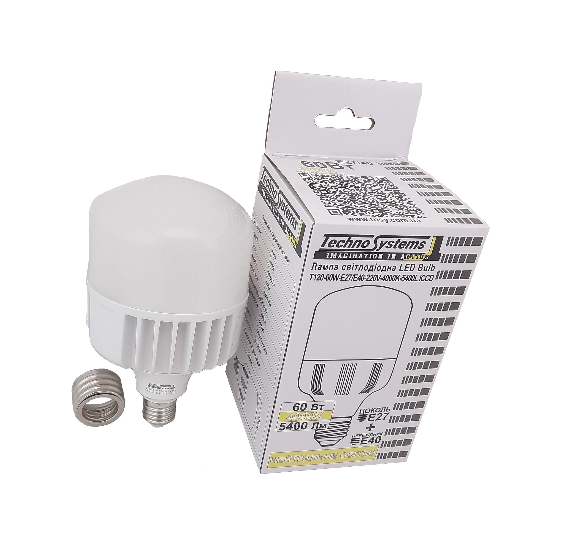 Лампа світлодіодна LED Bulb-T120-60W-E27-E40-220V-4000K-5400L ALUM TNSy