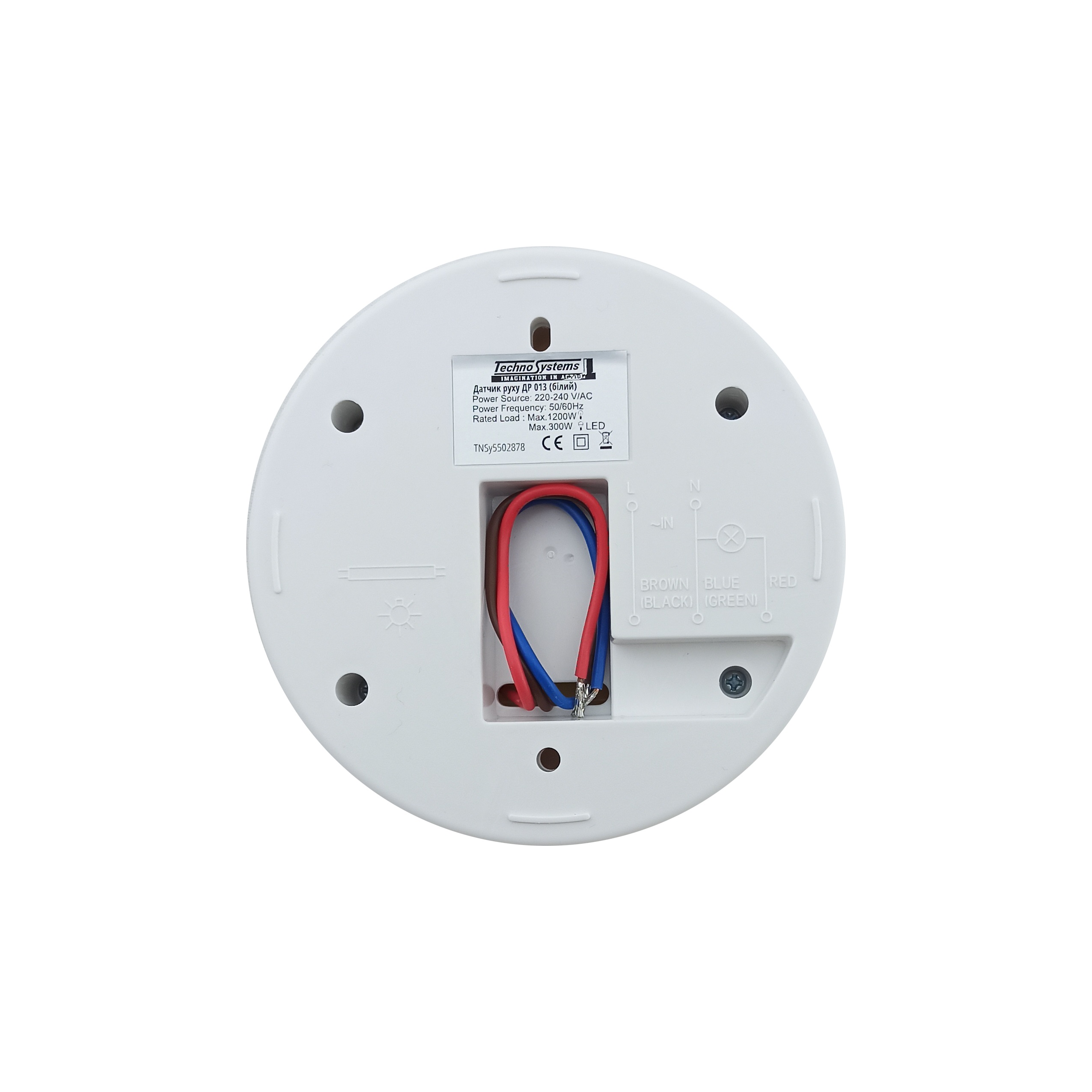 Датчик руху ДР 013 білий 1200Вт 120-360гр. 6м. IP20 TNSy