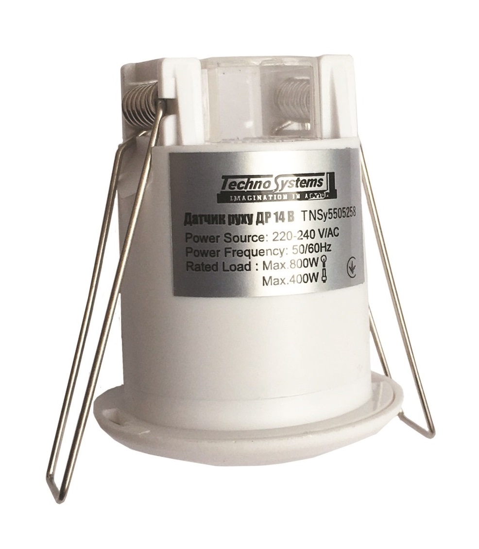 Датчик руху ДР 14В білий 800Вт. 360гр. 6м. IP20 — призначений для експлуатації в однофазних електричних мережах змінного струму напругою 230 В частотою 50 Гц.