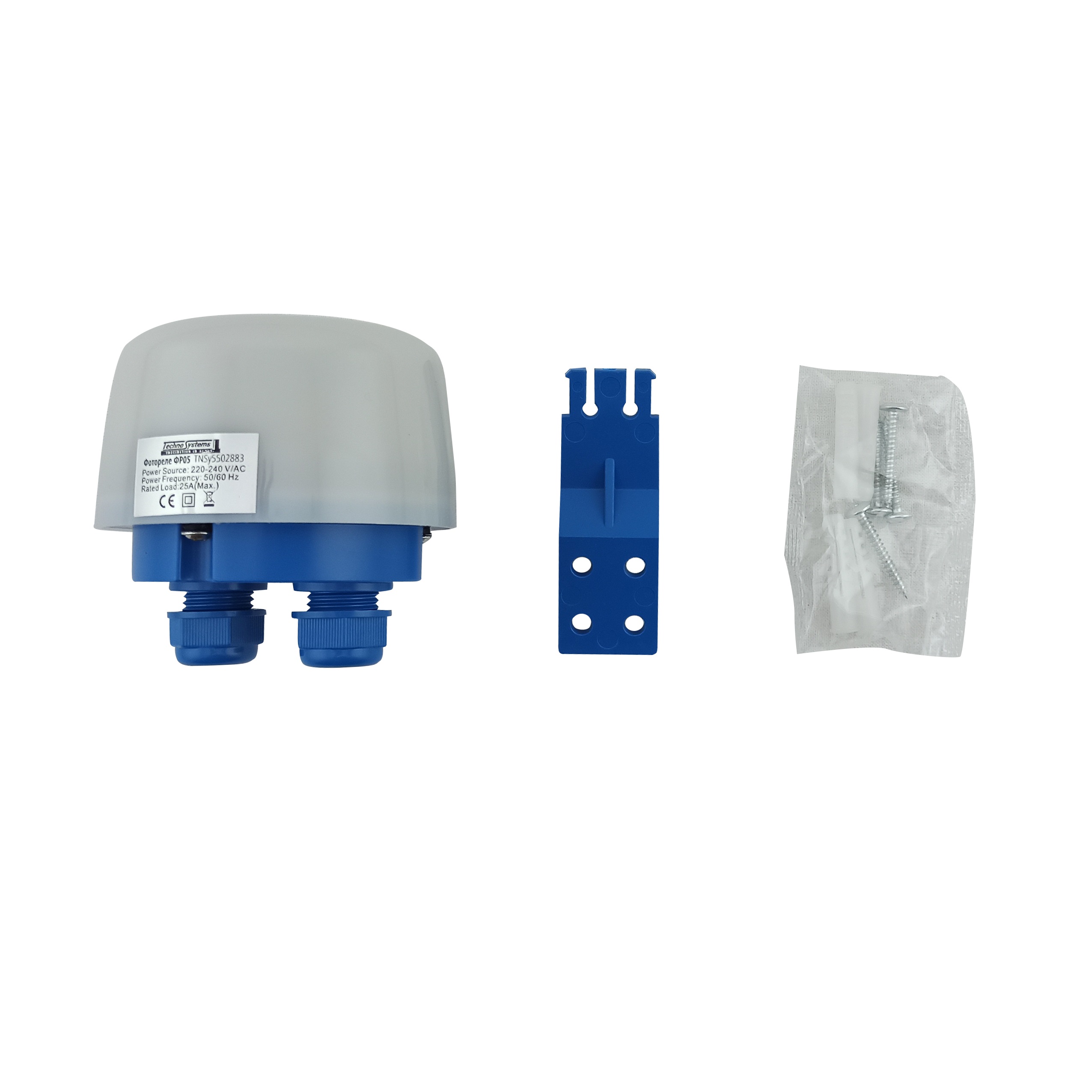 Фотореле ФР05 25А 5500Вт IP65 — призначене для експлуатації в однофазних електричних мережах змінного струму напругою 230 частотою 50 Гц.